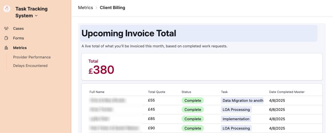 All work requests raised with Rose FP Solutions can be tracked live via our portal.Each tasks contains all the information you would expect to see - it's status, who it currently sits with, any delays, and expected completion times.This means: