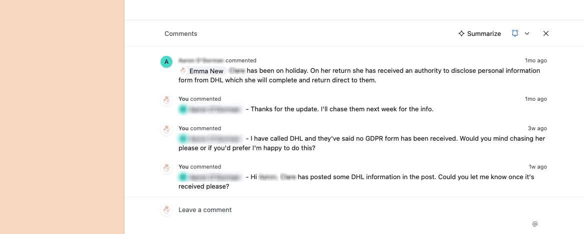 Every case also has it's own dedicated comments section, so important information is never lost in a busy inbox.
